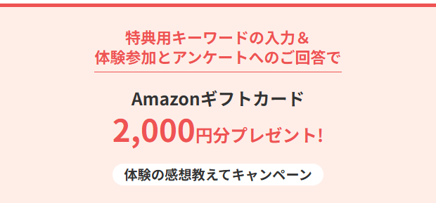 【公式サイト企画】体験の感想教えてキャンペーン(Amazonギフトカード2,000円分もらえる!)1/31まで