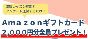 今なら無料体験レッスンに参加して、感想アンケートを送付すれば、もれなく全員にAmazonギフトカード(2,000円分)をプレゼント!