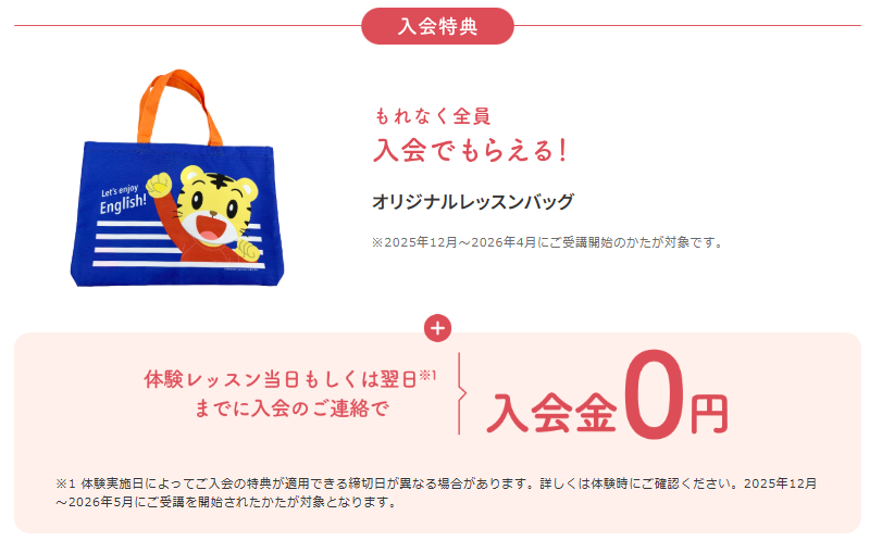 もし入会した場合、入会金の特典は大きいので、入会するにしてもしないにしても、まずは無料体験レッスンから受講してみましょう!
