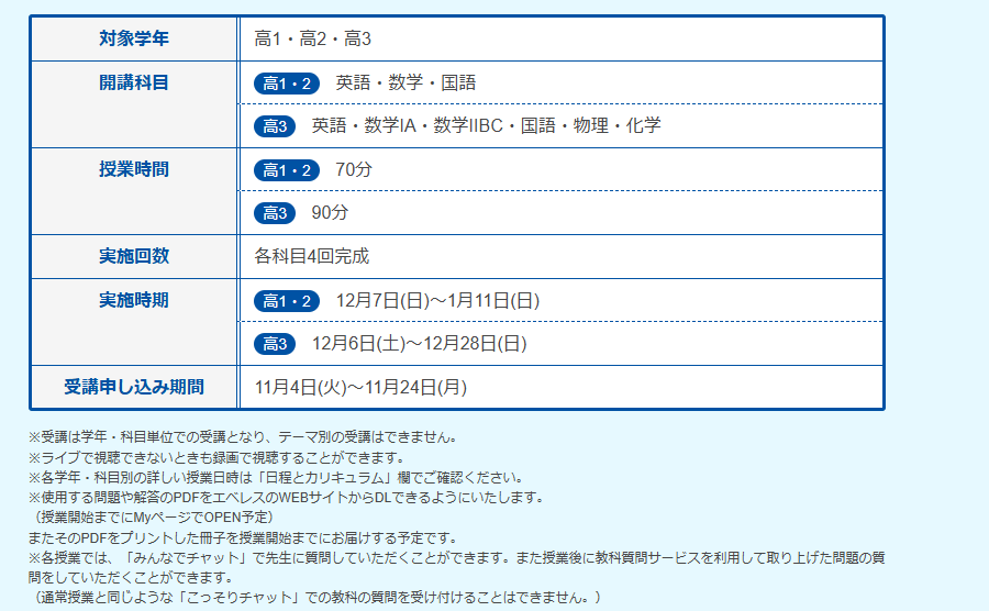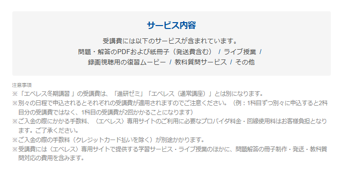 現在、〈高校講座エベレス〉をご受講されている方は、今回のキャンペーンの対象外となります。過去に〈高校講座エベレス〉をご受講されて退会された方は、夏期講習(8月号)半額キャンペーンの対象となります。