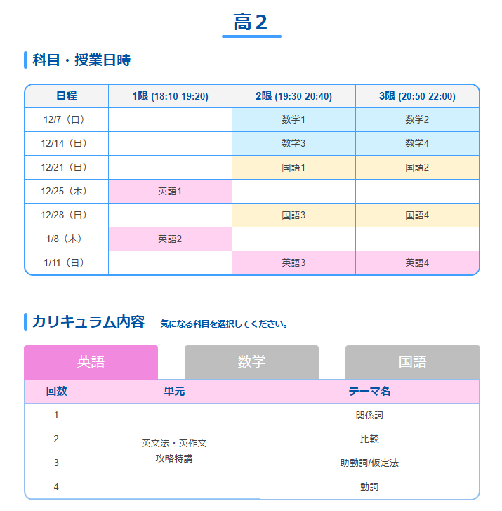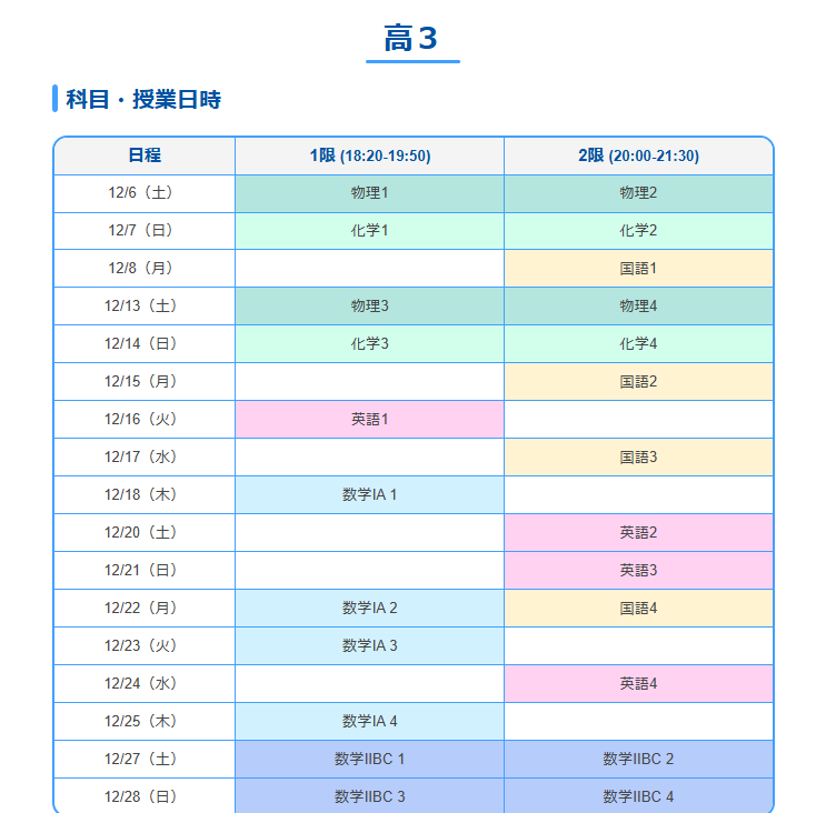 せっかくならMAX教科数受講しておきたいですね。