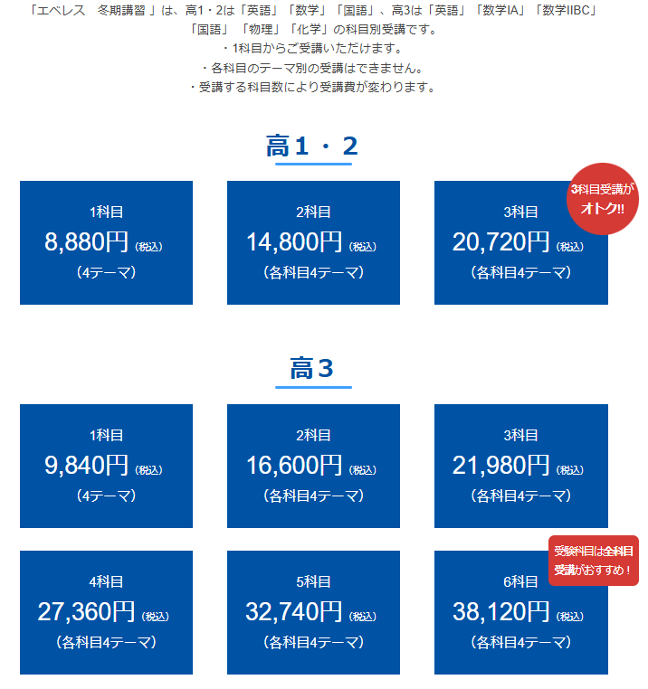 高校1年生の方で、過去に〈エベレス中3講座〉をご受講されている方は、半額キャンペーンの対象となります。