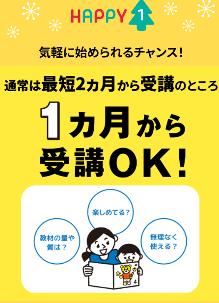 ①通常最短2カ月受講とのところ、1カ月受講からOK!