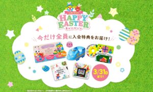 今ならこどもちゃれんじイングリッシュ入会者全員にお得な入会特典がもらえるHAPPY EASTERキャンペーンを実施中です。