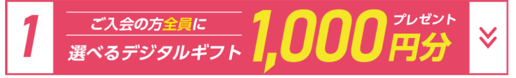 入会者全員に選べるデジタルギフト1,000円がもらえます。