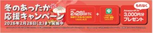 | ①冬のあったかキャンペーン(2/28まで) Amazonギフト券3,000円分プレゼント | ![]() |