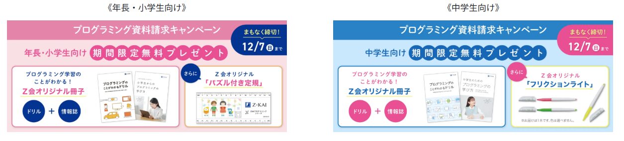 | クリスマスキャンペーン | ![]() 詳細はこちら>>【Z会プログラミング講座】 |