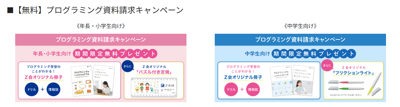 無料プログラミング資料請求キャンペーン | ![]() 詳細はこちら>>【Z会プログラミング講座】 |